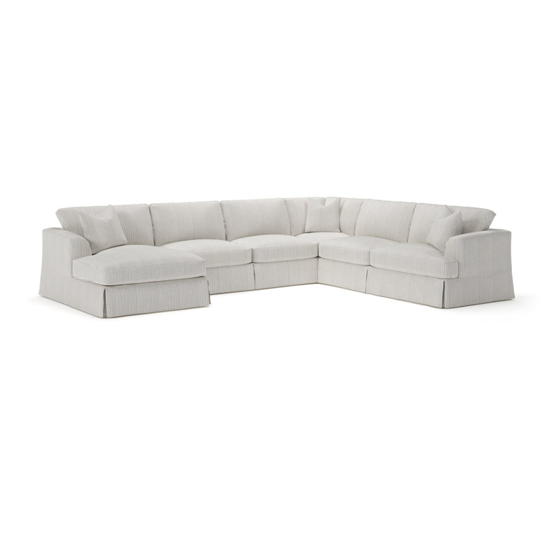 Made to order in your choice of fabric, this U-shaped sectional is designed for relaxed, everyday living. It features deep, down-blend cushions and a sturdy wood frame for lasting comfort and support. The tailored slipcover and clean, flared arms keep the look classic. Plus, it arrives fully assembled, ready to make itself at home. Wayfair Custom Upholstery Orientation: Left Hand Facing, Fabric: Cruise Gray Striped... (More Below)