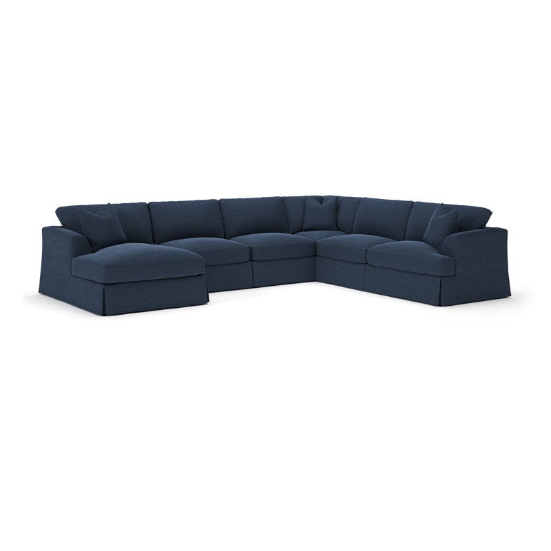 Made to order in your choice of fabric, this U-shaped sectional is designed for relaxed, everyday living. It features deep, down-blend cushions and a sturdy wood frame for lasting comfort and support. The tailored slipcover and clean, flared arms keep the look classic. Plus, it arrives fully assembled, ready to make itself at home. Wayfair Custom Upholstery Orientation: Left Hand Facing, Fabric: Drusky Navy Sustain® Basketweave... (More Below)