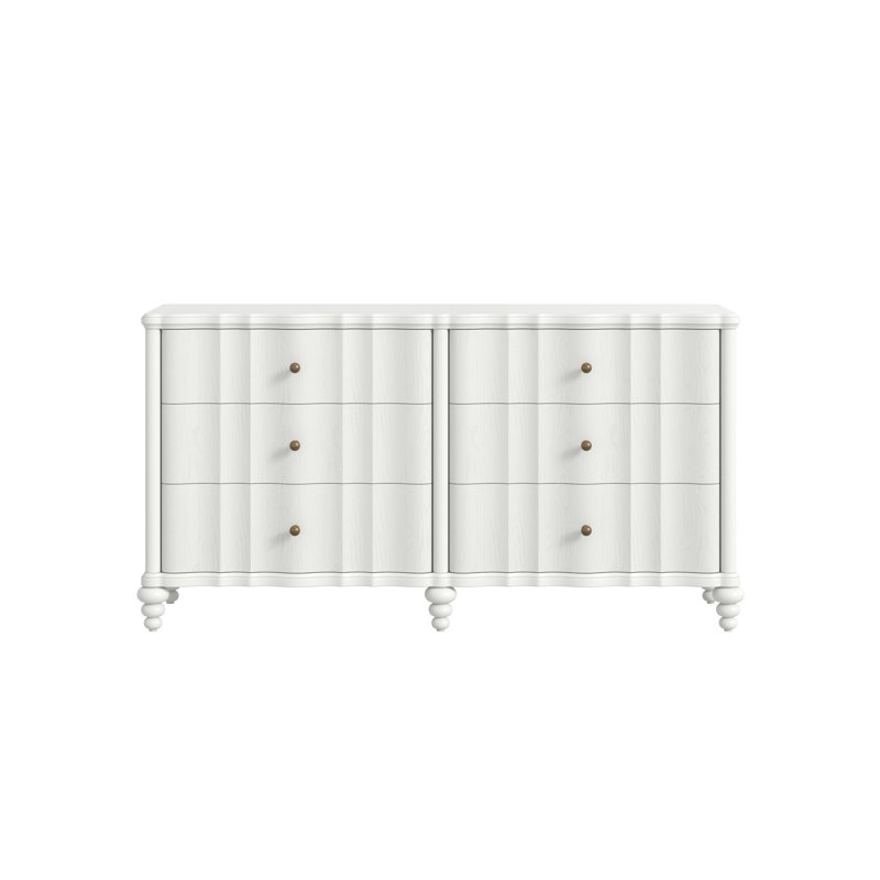 Bring a touch of refined whimsy to your bedroom with the Haven Dresser that reimagines classic dresser design with delightful details inspired by vintage finds. The gently fluted drawer fronts create a sense of textural interest, reminiscent of hand-carved details found in antique furniture. The soft, finish adds a fresh, airy feel, while the delicate scalloped apron and turned feet echo the timeless charm of a countryside cottage. With its ample storage and captivating design, this dresser seam... (More Below)