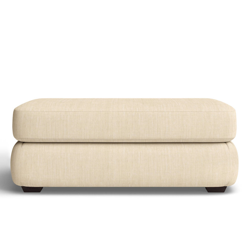 Relax in comfort with this plush ottoman. This design features a cushion that will stay firmly in place while you lounge. The cushion is filled with foam, which makes for an especially comfortable feel. A low rail gives the piece a low-profile silhouette, while finished wood legs round it out in style. Wayfair Custom Upholstery Fabric: Sunbrella Canvas FlaxWayfair Custom Upholstery