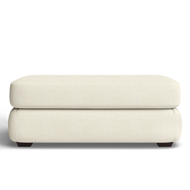 Relax in comfort with this plush ottoman. This design features a cushion that will stay firmly in place while you lounge. The cushion is filled with foam, which makes for an especially comfortable feel. A low rail gives the piece a low-profile silhouette, while finished wood legs round it out in style. Wayfair Custom Upholstery Fabric: Bevin Natural Linen BlendWayfair Custom Upholstery