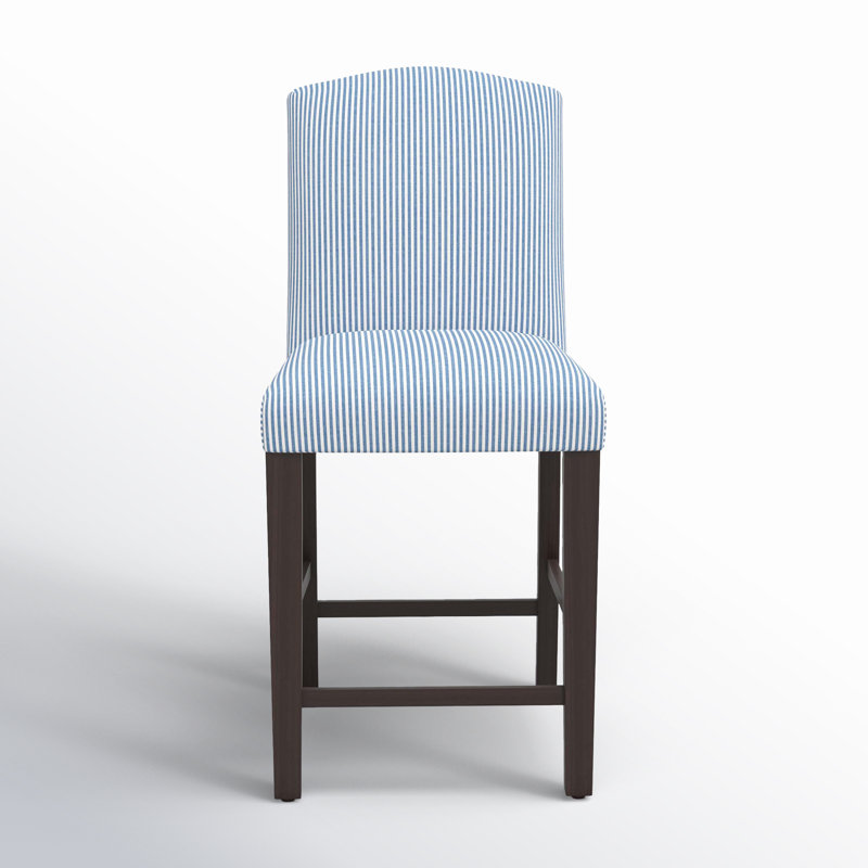 This upholstered stool is designed with a geometric pattern and comes in either a bar or counter height, making it a key ingredient to any kitchen or dining room. Its frame is made from sturdy wood and is wrapped in a fabric upholstery for added comfort. We love how the built-in footrest gives you a place to put your tired feet after a long day. Birch Lane Seat Height: Counter Stool (26” Seat Height), Color: Black Wood, Upholstery: Watercolor Palm Green... (More Below)