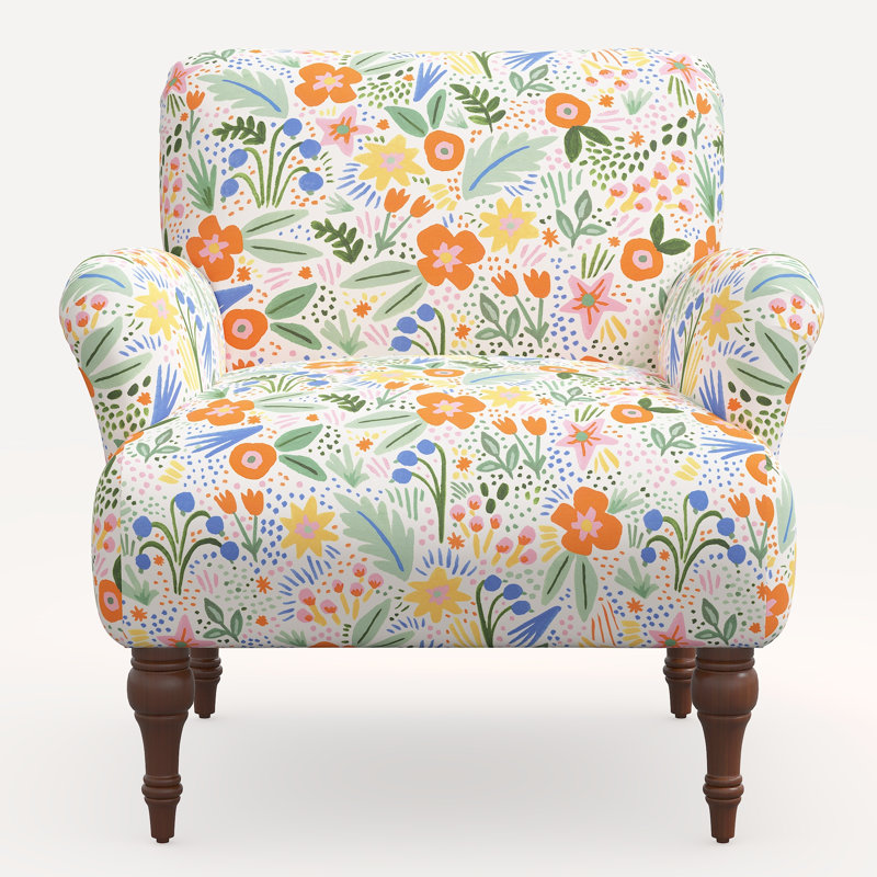 Rifle Paper Co.?s debut furniture collection features 15 classic silhouettes available in the brand?s signature prints and florals, all based on co-founder Anna Bond?s hand-painted illustrations. Body Fabric: Merida Linen BlendRifle Paper Co. x Cloth and Company