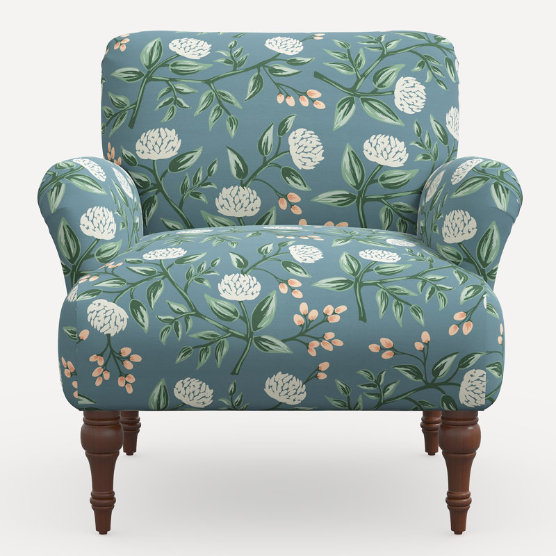 Rifle Paper Co.?s debut furniture collection features 15 classic silhouettes available in the brand?s signature prints and florals, all based on co-founder Anna Bond?s hand-painted illustrations. Body Fabric: Emerald Peonies Linen BlendRifle Paper Co. x Cloth and Company