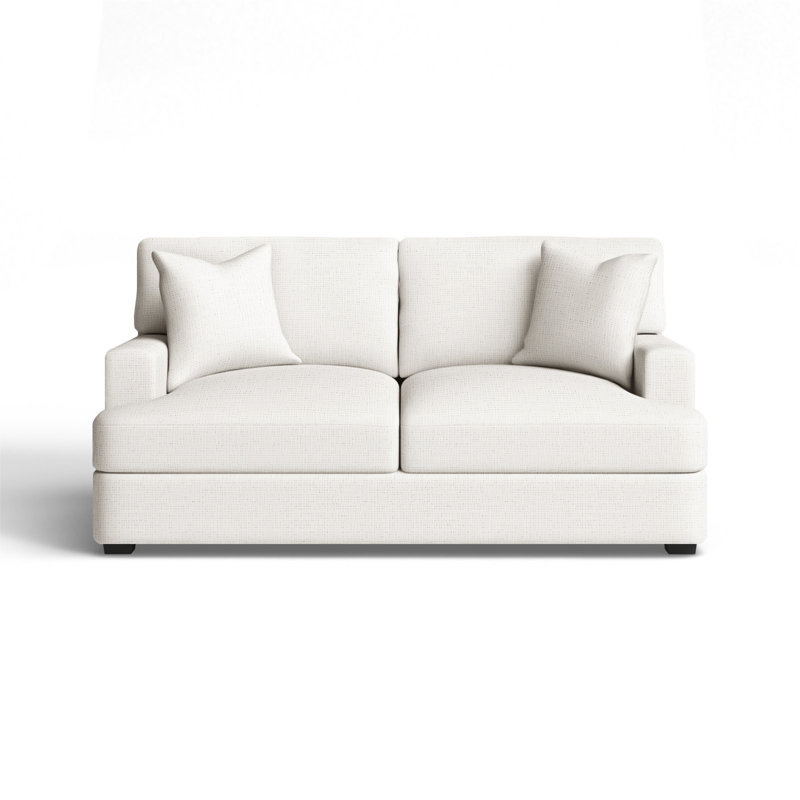 Relax in comfort with this plush loveseat. This design features back and seat cushions that will stay firmly in place while you lounge. The cushions are filled with foam, which makes for an especially comfortable seat. Recessed arms frame the piece and add to the relaxed vibe. A low front rail gives the piece a low-profile silhouette, while finished wood legs round it out in style. Wayfair Custom Upholstery Body Fabric: Drusky Moonglow Sustain BasketweaveWayfair Custom Upholstery