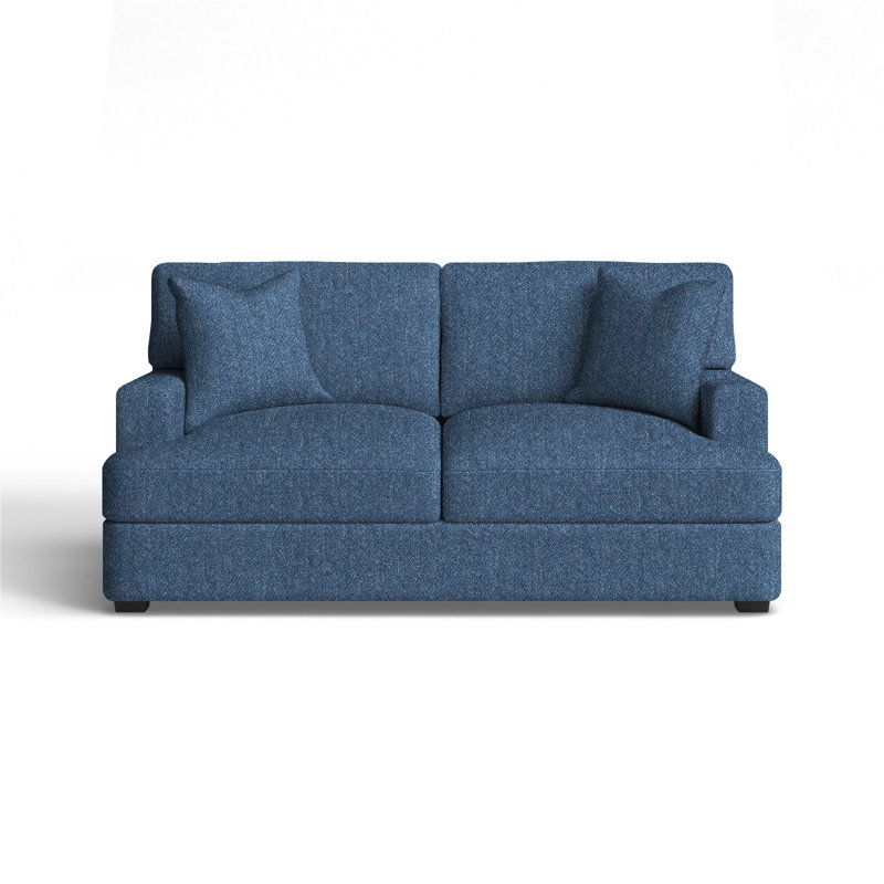 Relax in comfort with this plush loveseat. This design features back and seat cushions that will stay firmly in place while you lounge. The cushions are filled with foam, which makes for an especially comfortable seat. Recessed arms frame the piece and add to the relaxed vibe. A low front rail gives the piece a low-profile silhouette, while finished wood legs round it out in style. Wayfair Custom Upholstery Body Fabric: Classic Indigo DenimWayfair Custom Upholstery