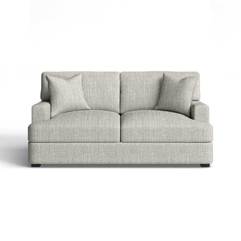 Relax in comfort with this plush loveseat. This design features back and seat cushions that will stay firmly in place while you lounge. The cushions are filled with foam, which makes for an especially comfortable seat. Recessed arms frame the piece and add to the relaxed vibe. A low front rail gives the piece a low-profile silhouette, while finished wood legs round it out in style. Wayfair Custom Upholstery Body Fabric: Beat Ash PerformanceWayfair Custom Upholstery
