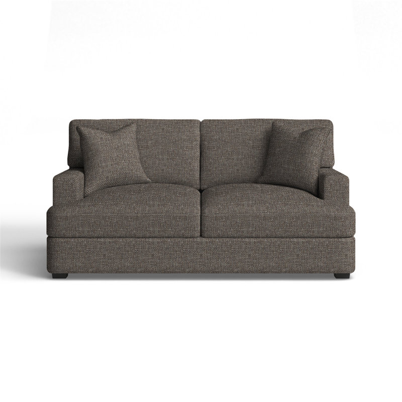 Relax in comfort with this plush loveseat. This design features back and seat cushions that will stay firmly in place while you lounge. The cushions are filled with foam, which makes for an especially comfortable seat. Recessed arms frame the piece and add to the relaxed vibe. A low front rail gives the piece a low-profile silhouette, while finished wood legs round it out in style. Wayfair Custom Upholstery Body Fabric: Sustain Dursky CharcoalWayfair Custom Upholstery