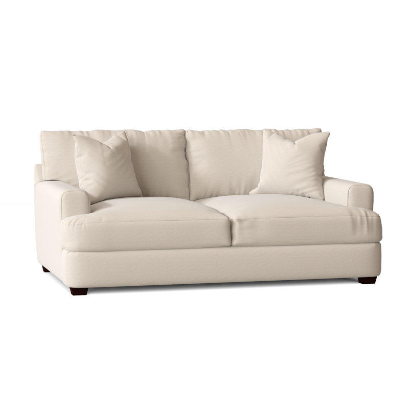 Relax in comfort with this plush loveseat. This design features back and seat cushions that will stay firmly in place while you lounge. The cushions are filled with foam, which makes for an especially comfortable seat. Recessed arms frame the piece and add to the relaxed vibe. A low front rail gives the piece a low-profile silhouette, while finished wood legs round it out in style. Wayfair Custom Upholstery Body Fabric: Bayou NaturalWayfair Custom Upholstery