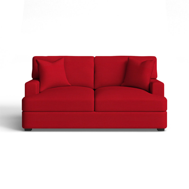 Relax in comfort with this plush loveseat. This design features back and seat cushions that will stay firmly in place while you lounge. The cushions are filled with foam, which makes for an especially comfortable seat. Recessed arms frame the piece and add to the relaxed vibe. A low front rail gives the piece a low-profile silhouette, while finished wood legs round it out in style. Wayfair Custom Upholstery Body Fabric: Bayou FlameWayfair Custom Upholstery
