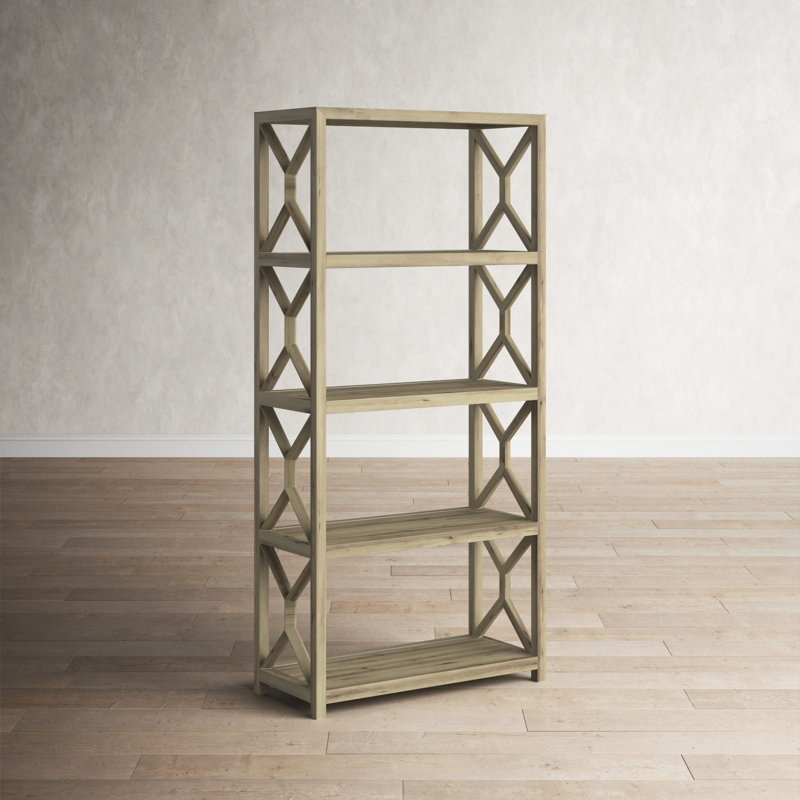 Create a resort-inspired retreat with the Lorne, featuring a wood frame crafted of Pecan Veneers finished. The laid-back vibe of this California casual-inspired piece is enhanced by geometric fretwork on the sides of the four fixed shelves. Birch Lane Color: Natural... (More Below)