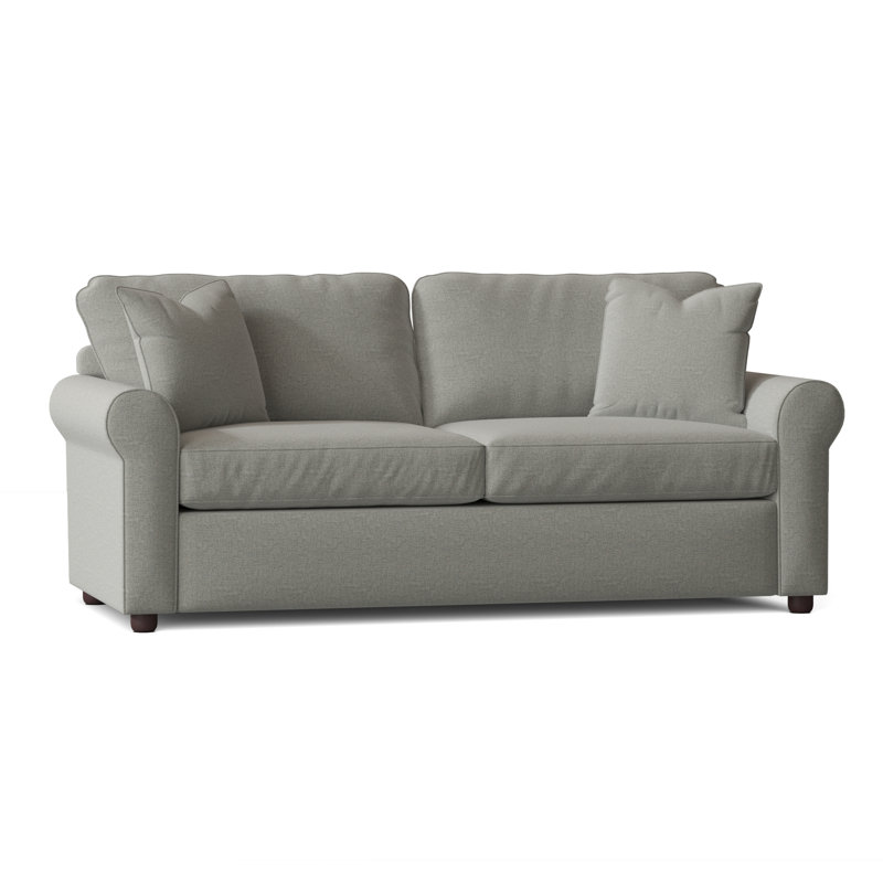 This 82" wide sofa is an inviting spot for playing board games with the family or curling up for movie night. It's made with a solid and engineered wood frame and upholstered with the fabric of your choice. Made in the USA, this sofa features rolled arms and foam-filled cushions to support you while you relax. Plus, its cushions are removable, so they're easy to vacuum, and they even come in removable cushion covers. Two toss pillows are included. Choose from a variety of fabrics to create a traditional or coastal look in your home. Sand & Stable Fabric: Vault Spa PerformanceSand and Stable