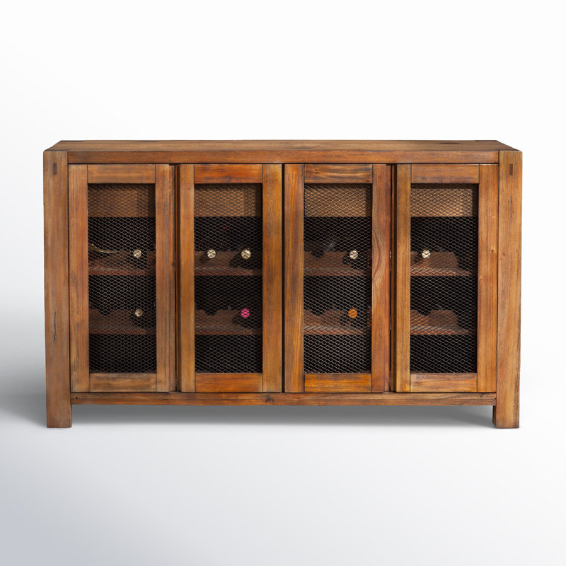 Deck out your dining room in rustic style with this Bilmar Multifunction Sideboard & Console, Salvaged Natural. This server is handcrafted from salvaged mahogany solids and veneers. This piece sports a natural brushed finish and wire door inserts for an authentic farmhouse look. Functional features include felt-lined drawers, interior shelves, and wine storage. This piece coordinates with other pieces from the Bilmar dining group which are sold separately. Birch LaneBirch Lane