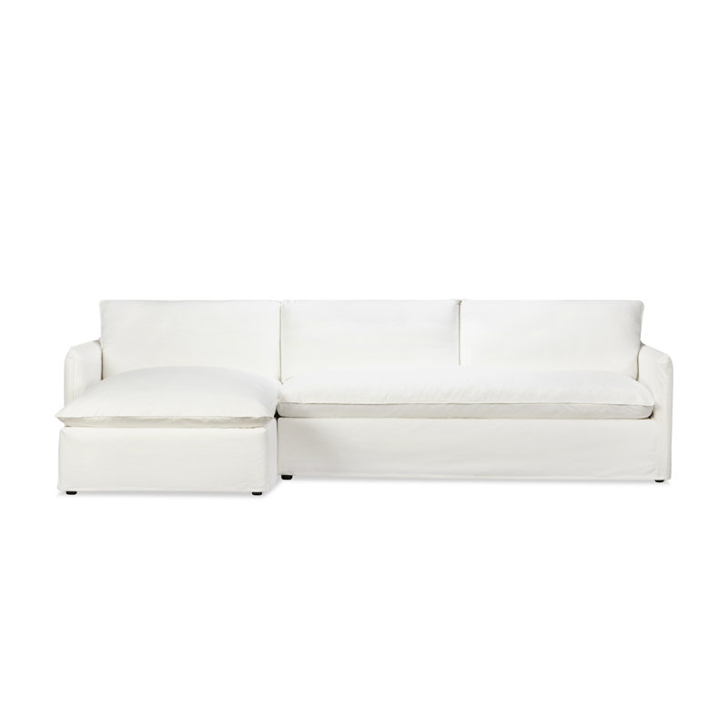 This low-profile slipcover sectional was designed with thin arms and flange detailing to create a relaxed feeling that?s just dreamy. It's plush blend down and foam cushions add extra-soft texture and inviting atmosphere to any living space. Birch Lane Fabric: Conversation Capri Basketweave, Orientation: Left Hand FacingBirch Lane